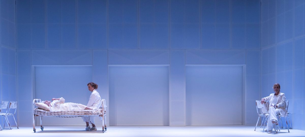 La trama se desarrolla en un hospital, exageradamente blanco, utilizando una camilla vieja, oxidada, imagino que con la intención de llevar al espectador a ese contexto de manicomio.